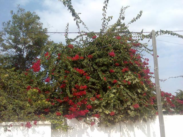 Das Leben verbirgt sich hinter hohen, oft glasscherbengekrönten Mauern. Abgeschottet von den staubigen, bürgersteinlosen Strassen, auf denen Autofahren als Vollkontaktsport betrieben wird, Nichtautos als zügig zu umfahrende Hindernisse betrachtet werden und die Hupe ein Verschleißteil ist. Manchmal wuchert das Verborgene über die Mauer hinaus und bietet dann ein bischen Bunterholung fürs Auge.